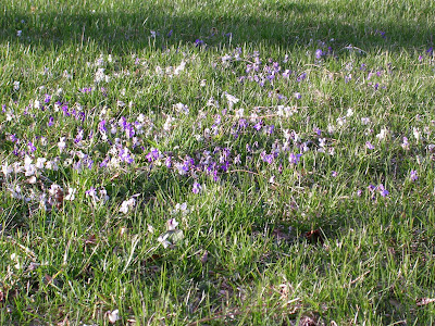 I can't tell exactly. However the blooms remind me of either wild violets or Johnny Jump ups. But there seems to be some other type of ground cover in there... maybe some vinca minor? Nice pics!